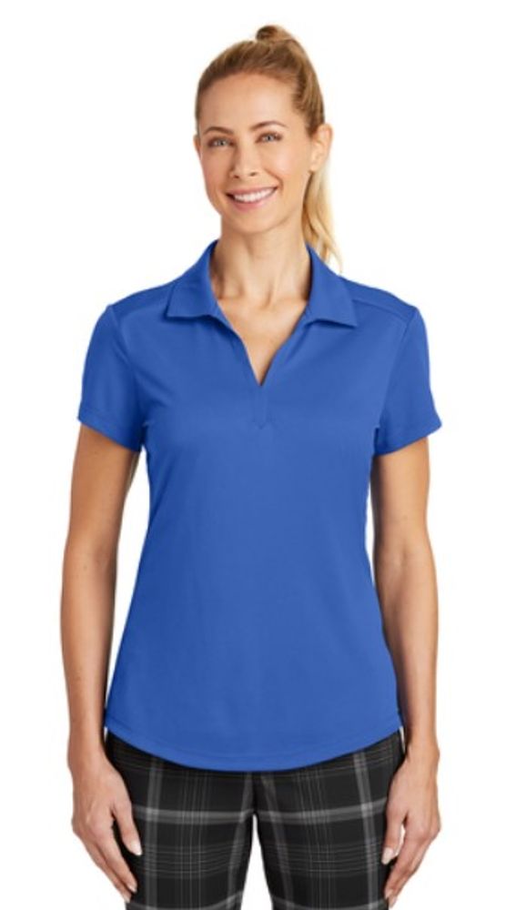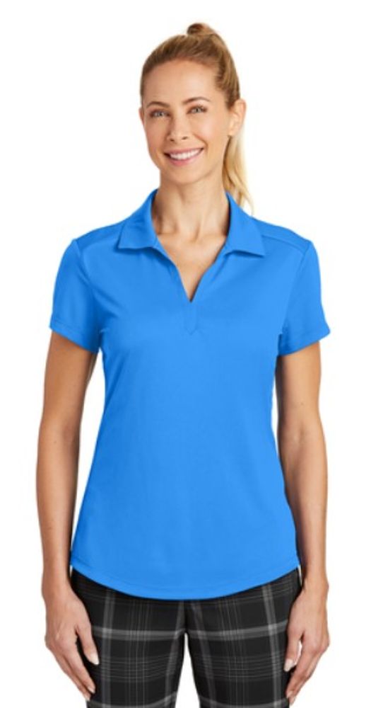 A modern tribute to the unparalleled Nike heritage, this sophisticated polo has a subtle, grid-like texture and is engineered with Dri-FIT moisture management technology. Tailored for a feminine fit. Design details include a self-fabric collar with an open Y-neck placket and open hem sleeves. The contrast heat transfer Swoosh design trademark is on the left sleeve. Made of 4.2-ounce, 100% polyester Dri-FIT fabric.