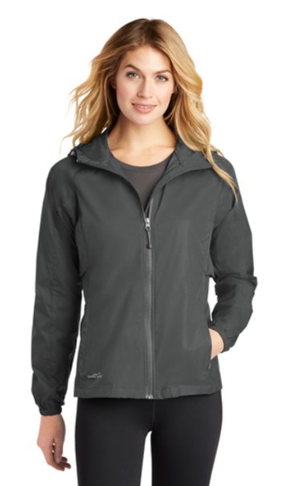 Wind was the inspiration for this compact layer - and it packs down into a pocket, making it easy to carry wherever you go. Hood with drawcord and toggles for adjustability, contrast reverse coil zipper, underarm vents, elastic cuffs and an open hem. Made of 100% nylon. Front zippered pocket with packable left pocket and contrast Eddie Bauer logo on hem.