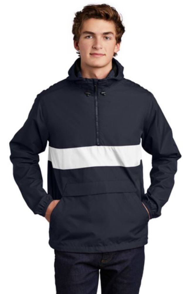A classic wind and water resistant anorak, designed to keep the light rain out and the outdoor fun going. 100% polyester shell with mesh body/hood lining and polyester sleeve lining. The 3-panel hood has drawcords and toggles and the angled chin guard is a nice touch for when you are all zipped up.
